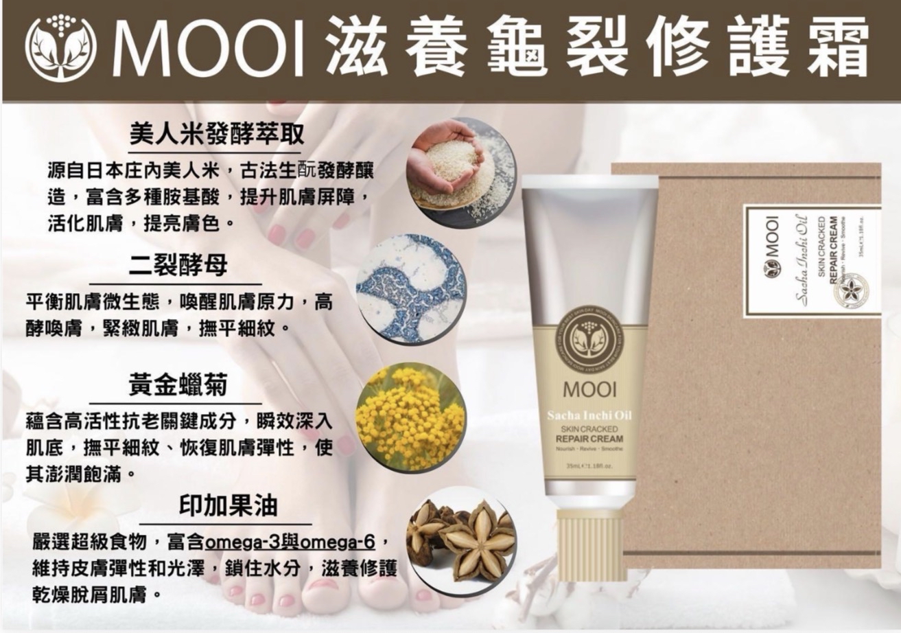 MOOI龜裂滋養修護霜35ml(附護膚手套1雙) 庄內美人酵母酒粕 柔嫩勻白 黃金蠟菊 腳跟龜裂 滋養修護 延緩肌膚衰老 提亮膚色平滑肌膚